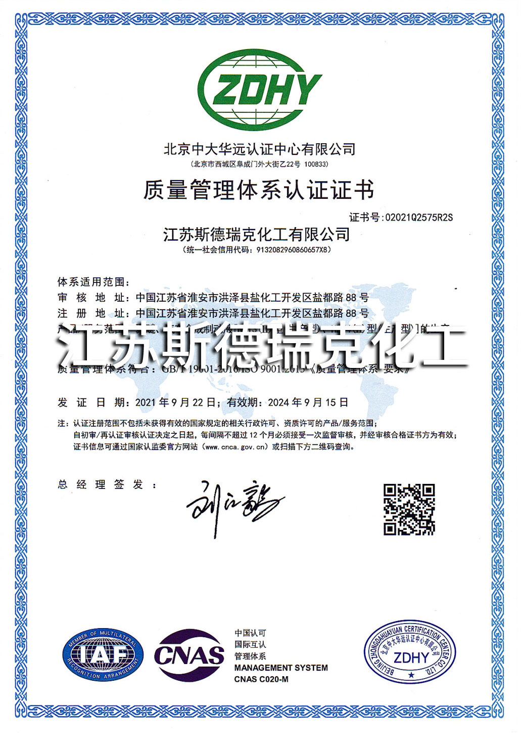江蘇斯德瑞克化工有限公司成立于2002年,是一家集研發、生產和銷售一體化的“國家高新技術企業”。現有員工100多人,其中科技人員占20%以上;位于江蘇省淮安市鹽化工園,占地面積180畝,建筑面積達38000多平方米。